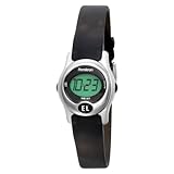 Simple yet stylish, this digital Armitron watch delivers basic functions with sporty good looks. A black resin band joins to a round, 19-millimeter-diameter, silver-tone resin case that features a rounded, polished silver-tone bezel with a button that easily illuminates the display. An easy-to-read, oversized LCD digital display beautifully shows the time, and at the touch of a button, reveals the day and date. Water resistant to 165 feet, this sporty watch is durable yet pretty.