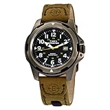 From the mountains to the sea, this Timex has no boundaries. Worn by extreme adventurists such as Conrad Anker, the Timex men's Expedition watch belongs to the great outdoors. The case is metal, and the black dial face is prominently embellished with contrasting Arabic numerals. The watch comes equipped with a reliable buckle clasp and an accompanying green leather band. For additional convenience, a date calendar rests at the three o'clock position. Powered by analog-quartz movement, this sophisticated timepiece is a must-have for all fashion-savvy wilderness enthusiasts. This watch, which is also water resistant up to 330 feet.