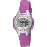Keeping on moving. This Timex Women's 1440 Sports Watch #T5K080 is a classic blend of traditional design with contemporary details and technological innovations. This timepiece, which is powered by digital-quartz movement, comes equipped with a steadfast resin band in brilliant violet and an accompanying buckle clasp. The acrylic dial window, stationary resin bezel, and 35-millimeter resin case ensure stylish durability. Other handy features include the easy-to-read digital gray dial face, a 24-hour chronograph, a daily alarm, a calendar, and an Indiglo nightlight function. This watch, which is water resistant to 165 feet.
