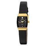 The sleek lines of the mod Armitron women's Diamond Accented Black Dial watch will suit your elegant business attire. Constructed with a 17-millimeter stainless steel case, this hip timepiece also includes a gold-tone stainless steel rectangular bezel, and a 12-millimeter black leather bracelet secured to the wrist with an adjustable buckle clasp. A durable mineral window shields the black dial face, which features gold-tone hour indexes and a sparkling crystal accent at 12 o'clock. Gold-tone hour, minute, and second hands on this analog-quartz powered watch complete its clean, stylish appearance.