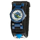 It is always important to know your enemy, making this Visorak watch by LEGO an exciting and cool way to tell time for any Bionicle fan. A 3-dimensional blue Visorak head is featured right on the black strap of the non-allergenic poly-carbonite band; the band has an easy-to-use Velcro and clip-on clasp closure. The white dial face features Bionicle images along with easy-to-read numbered indexes and 3 luminous hands. The case and bezel are also made of non-allergenic poly-carbonite, and the interchangeable bezel allows you to mix and match Bionicle watch accessories for additional fun. This durable, analog-quartz watch is water resistant up to 165 feet, so it is as ready for adventure as the Bionicle watch wearer.