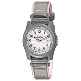 While it looks like a sturdy but casual watch, this Timex Expedition is built to excel just about anywhere you take it, as demonstrated by its most celebrated owner, Everest mountaineer Conrad Anker. The hands are illuminated, and the silver dial also features the Indiglo night light function and a date calendar at the three o'clock position. Arabic numerals and full indexes allow for easy time-keeping in any situation. The gray strap is nylon with pink accents matching the second hand and the illuminated pink numerals denoting military hours. The metal case is water resistant to 165 feet (50 meters), the black bezel is aluminum. The watch uses analog-quartz movement.
