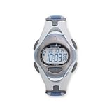 Timex gives its signature Ironman Triathlon multi-function, performance sport watch a sleek new look that's a great fit for both men and women and a deep blue Indiglo night-light. Featuring a full complement of athletic timing features and a striking profile, the Timex T5G291 digital watch has a white and light blue top ring, silver and blue nylon strap, and an all-day white reflector display for easy readability. It features three alarms that can be set for daily/weekday/weekend/weekly alarms, two time zones, and water resistance to 100 meters (330 feet). Sport timing functions include: