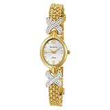 Turn your timepiece into a sophisticated fashion accessory with the Armitron Women's Now Collection Bracelet Set watch. Constructed with a delicate 17-millimeter stainless steel case, the analog-quartz-powered watch includes a smooth oval-shaped, gold-tone stainless steel bezel with glittering crystal accents. The intricate 7-millimeter link bracelet secures to the wrist with a simple bangle bracelet clasp. A strong mineral window protects the white dial face. Gold-tone Arabic numerals ring the face at three, six, nine, and 12 o'clock, while matching gold-tone watch hands record the time as it passes.