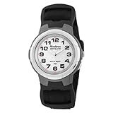 Stay sporty with this athletic-looking Armitron watch. Its 20-millimeter-wide nylon band joins to a 37-millimeter-in-diameter resin case. The cool resin bezel adds a metallic look to this cool watch with a rounded, mineral-coated dial window. The white dial displays easy-to-read black Arabic numeral hour indicators as well as stick minute and second markers. Luminescent hands and Armitron's Instalite technology make this quartz-powered watch a breeze to read anywhere, anytime. Water resistant to 165 feet, this timepiece is durable and dependable.