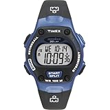 Keep your sports training focused with the traditional, mid-sized Timex T5E161 Ironman Triathlon multi-function, performance sport digital watch, which features a splash of color to keep things fun and stylish. It has a blue watch case topped by a black resin top ring and a blue top pusher button that provides easy access to lap and split times. Sport timing features include a 30-lap memory recall, 100-hour chronograph with lap or split option, 24-hour countdown timer with countdown/stop and countdown/repeat functions, and 99-lap counter. It also features daily/weekday/weekend alarms with 5-minute back-up, two time zones, built-in setting reminders, water resistance to 100 meters (330 feet), and black polyurethane strap.