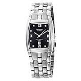 A seamless design and unique shape define the distinguished Armitron Men's Diamond Silver-Tone Black Dial Dress Watch. The stainless steel tonneau case stretches elegantly to meet the flexible stainless steel band, unifying the sleek look of this professional men's watch. Featuring eight sparkling diamond indexes, silver-tone Roman numerals at three, six, nine, and 12 o'clock, and silver-tone hands, the bold black dial also offers the convenience of a date display just inside six o'clock. Reliable Japanese quartz movement and a water-resistant depth of 99 feet (30 meters) make this timepiece ideal for the active man. This fashionable timepiece fastens quickly and securely with a handy fold-over clasp with safety. Enjoy the refined look of this classy accessory, which adds a dignified look to your wardrobe.