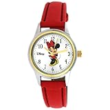Disney Minnie Mouse Red Strap Watch, quartz movement, silver dial with Minie Mouse, gold hands, Two tone case.